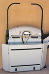• Bandejas laterales automáticas que se bloquean mecánicamente para protección de la silla de ruedas y se abaten para enlace automático con el piso de llegada.